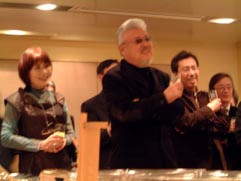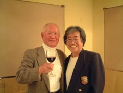 ワイングラスを片手にちば先生と矢口。(右写真)