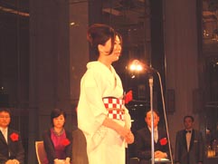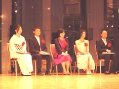 受賞された5名の漫画家の先生方に賞状、ブロンズ像(山形博導・作"MEMORY")、花束が贈られました。 安野先生、曽田先生、伊藤先生、ジョージ先生、三田先生、おめでとう御座います!! |