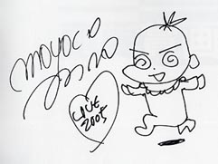 ![]() 安野先生(左)から頂いた可愛いサイン。ダンナ様は庵野秀明監督!! 昔、『新世紀エヴァンゲリオン』、『不思議の海のナディア』にドップリハマッていた私・・・・・ 伊藤先生(右)から頂いた「大森さん」のサイン。大好きなキャラです! な〜んとなく矢口に似てません? |